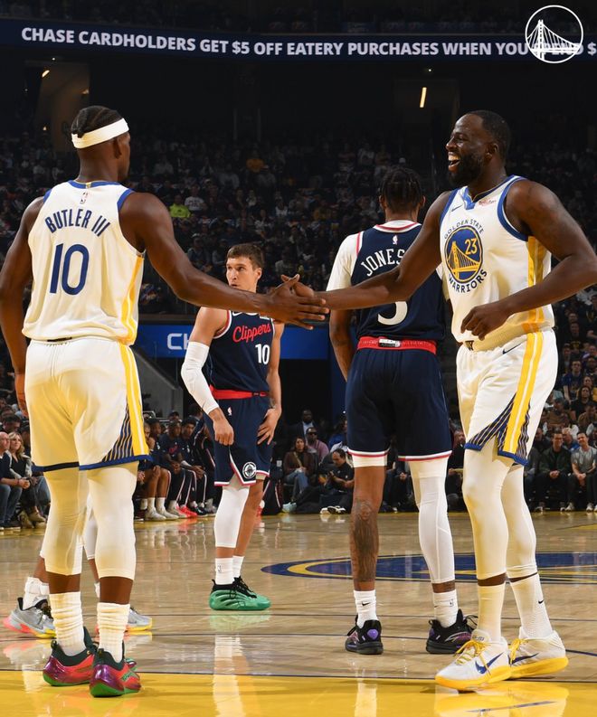 中场休息时不知道科尔给勇士众将说了些什么,他们的体能一下变得充沛起来开场就打出14-6直接反超,随后快船神奇的就崩盘了各种失误+打铁,勇士这一节单节净胜18分拉开差距,库里、巴特勒、波杰三人得分也上双了,第三节哈登得分挂零,小卡第三节只拿4分,快船双核沉寂十分难受。