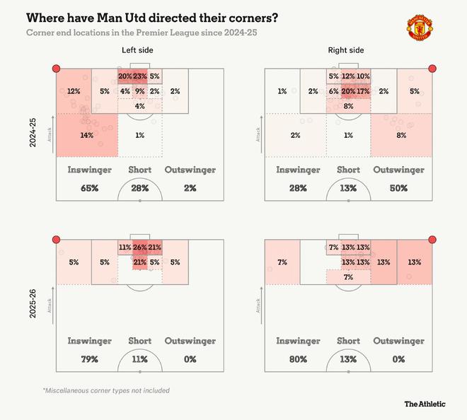 就联赛整体而言,本赛季至今的主题之一是定位球。顶级联赛球队比以往任何时候都更注重优化死球情况,深入研究战术套路以获取最微小的优势。因此,说到这里,你注意到曼联不再主罚外旋角球了吗?